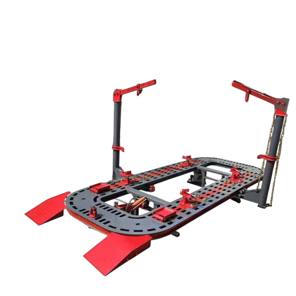Две силовые стойки (башни) (Опция 4 силовых башни) с гидравлическим приводом и тяговым усилием по 10 тонн ( опция 20- тонн) свободно перемещаются вокруг платформы в пределах 360°, что делает возможным приложение тягового усилия к любой точке кузова автомобиля. Высота приложения тягового усилия легко изменяется посредством изменения положения хомута со шкивом.