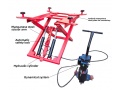Для удобного заезда и съезда автомобиля используется гидравлическое подъемное устройство. Управление подъемом и опусканием осуществляется посредством пневмогидравлического насоса. Кроме того, в комплект поставки стапеля входят две въездные аппарели.