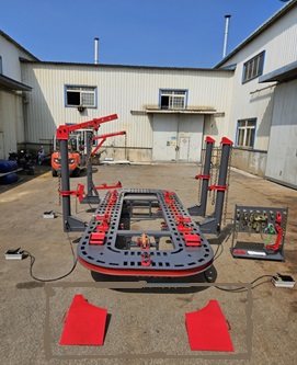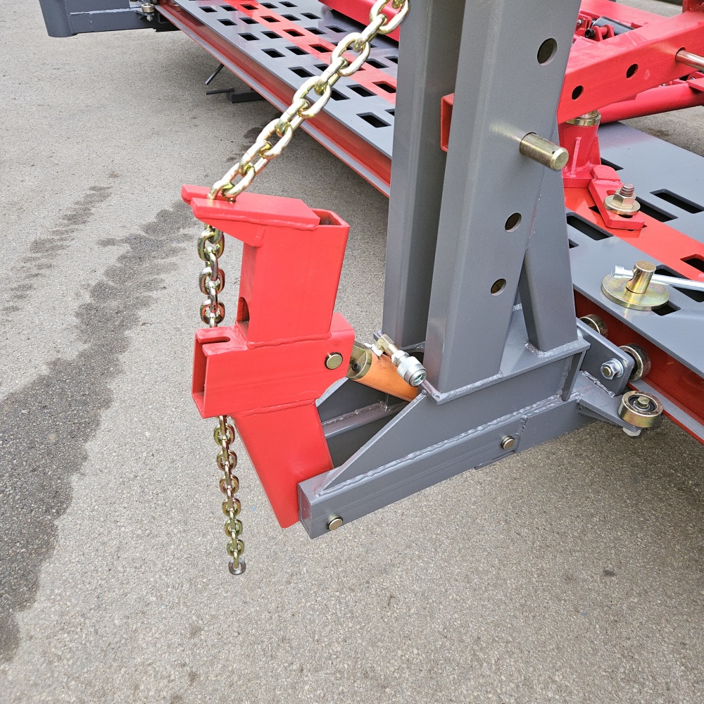 Две силовые стойки (башни) (Опция 4 силовых башни) с гидравлическим приводом и тяговым усилием по 10 тонн ( опция 20- тонн) свободно перемещаются вокруг платформы в пределах 360°, что делает возможным приложение тягового усилия к любой точке кузова автомобиля. Высота приложения тягового усилия легко изменяется посредством изменения положения хомута со шкивом.